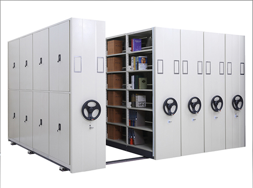 檔案密集架,主要由軌道、架體、底盤、面板、門板、目錄卡及傳動(dòng)裝置、防倒裝置、密封裝置九部分組成。 檔案密集架的工作原理是什么?